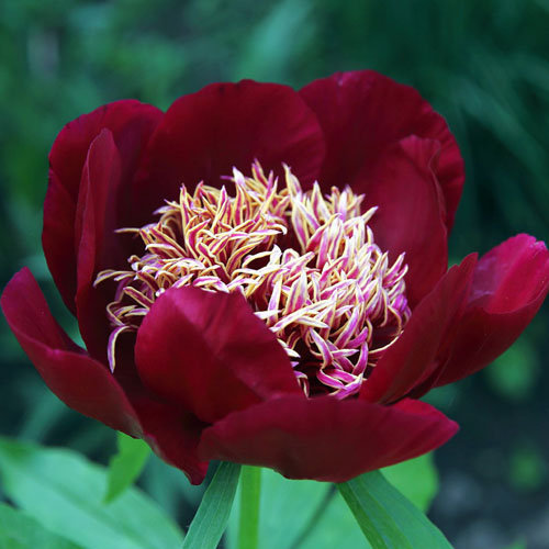 Саженцы пиона Chocolate Soldier – это красивое сочетание роскоши и изящества. Форма чаши соцветий японская, в течение летнего сезона она меняет свою пышность от полумахровой до махровой. Цвет лепестков очень насыщенный шоколадный, переходя в черный оттенок. Задора и игривости бутонам придают стаминодии с ярко-желтыми кончиками. Данный сорт имеет ранний срок цветения, в этот период он источает вокруг себя приятный и нежный аромат. На прочных стеблях располагаются светло-зеленые широкие и округлые листья, куст формируется очень компактный и аккуратный. Chocolate Soldier будет радовать своих владельцев каждое лето необычайно красивыми цветками.