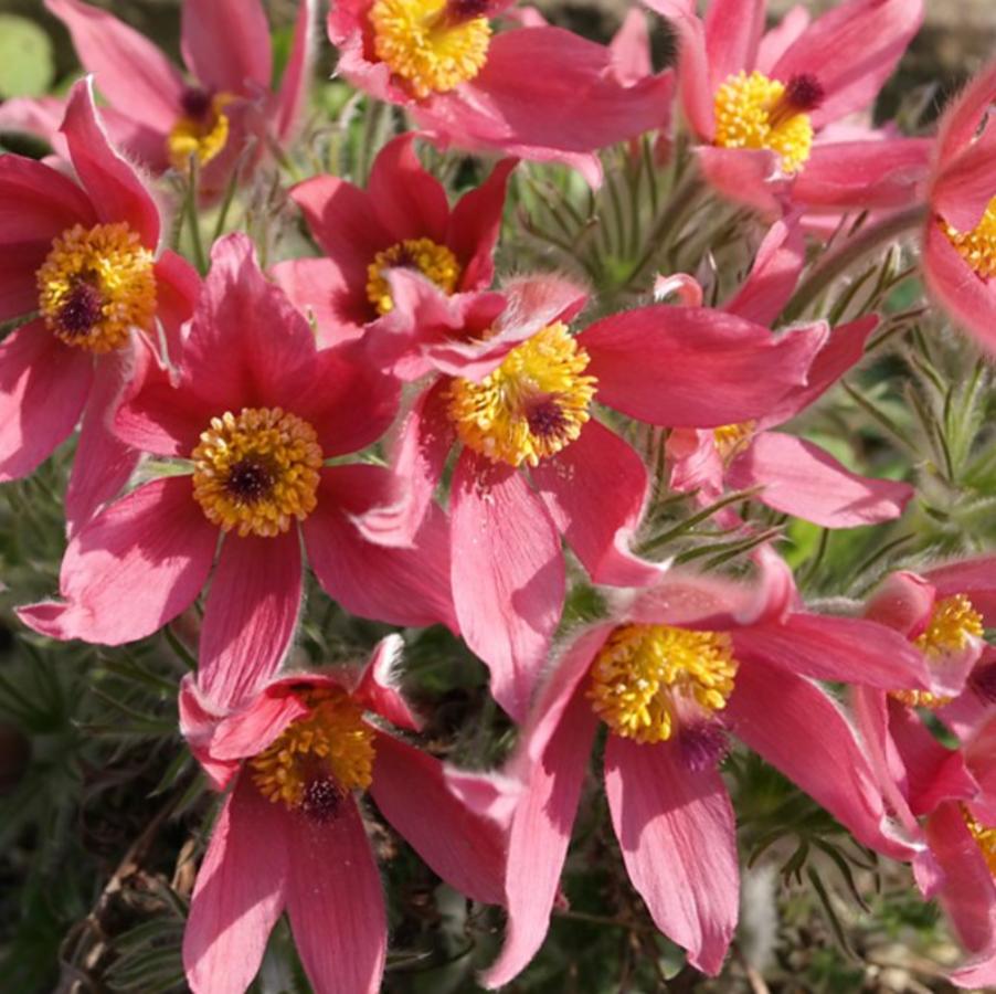 Прострел обыкновенный Розеа/Rosea - эффектный шелковисто-опушенный первоцвет с крупными колокольчатыми розовыми цветками с многочисленными желтыми пыльниками.