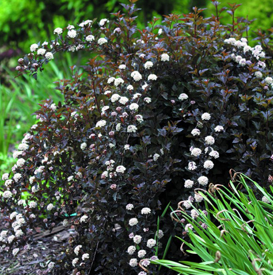 Пузыреплодник калинолистный Summer Wine - кустарник с множеством прямых побегов, достигает высоты 3 метров. Толщина веток достигает 1,5–2 см., длина составляет до 1–1,5 м. Листья пурпурно-красные. Цветки бледно-розовые собраны в плотные соцветия. Цветет этот сорт весной. Неприхотлив к почве и поливу. Морозоустойчивость высокая.
