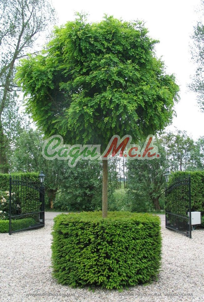 Листопадное небольшое привитое дерево с плотной, округлой кроной и тонкими побегами, с возрастом крона уплощается; растет медленно.