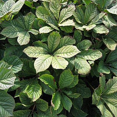Роджерсия Hercules - растение высотой 100 – 120 см (листья 50 – 60 см). Цветет в июле. Листья более округлые, они достигают 50 см не только в длину, но и в ширину. Доли листа также шире, поэтому лист выглядит более плотным. Бледно-розовые многочисленные цветки собраны в крупные метельчатые соцветия.