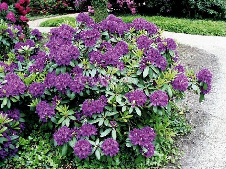 Рододендрон Azurro - куст около 100 см высотой. Цветки темно-фиолетовые с красно-фиолетовым пятнышком, лепестки с волнистыми краями. Зимостойкость до -23°С.
