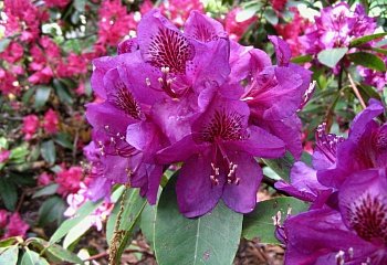 Рододендрон Lee's Dark Purple - сорт вечнозелёных рододендронов гибридного происхождения. В возрасте 10 лет высота около 150 см, ширина около 200 см. Крона округлая, плотная. Листья слегка волнистые, тёмно-зелёные, блестящие. Соцветия округлые, ширина около 120 мм, несут 9—16 цветков. Цветки 55?70 мм, воронковидные, тёмно-фиолетовые. Внутри в верхней части пятно из зеленовато-коричневых точек. Тычинки фиолетовые. Аромат отсутствует. Цветёт в конце мая — начале июня.