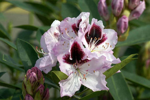 Рододендрон Sappho - вечнозеленый кустарник, достигающий 2 метров в высоту и 2 метра в ширину. Образует объемную пушистую крону. Сиреневые бутоны раскрываются в прекрасные белый цветы. Цветки крупные, чистого белого цвета, на центральном лепестке крапинки темно-фиолетового цвета (иногда темно-кровавого или почти черного). Цветки неароматные. При посадке именно этого сорта нужно избежать глубокой тени, это может привести к разрастанию кроны. Холодоустойчивость до — 24 °С. Высота взрослого растения 200 см. Диаметр куста взрослого растения 200 см. Время цветения май-июнь.