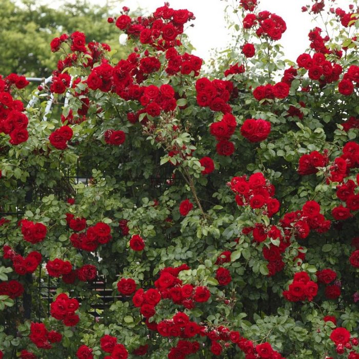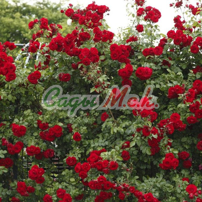 Роза Amadeus - необыкновенная красная плетистая роза, притягивающая к себе внимание своим пышным, волнообразным цветением и крупными, чашевидными, потрясающе красными, махровыми цветками. Они распускаются из округлых, темно-красных бутонов в соцветиях по 5-7 шт., обладают легким ароматом шиповника, отлично переносят дождь и жару. Диаметр цветка 8 - 10 см. Высота растения более 2-х метров. Куст мощный, прямостоячий, сильнорослый. Листва темно-зеленая, глянцевая, прекрасно контрастирует с сияющее-красными цветками, выделяя их на своем темном фоне. Сорт характеризуется очень хорошей морозостойкостью и хорошей устойчивостью к заболеваниям.