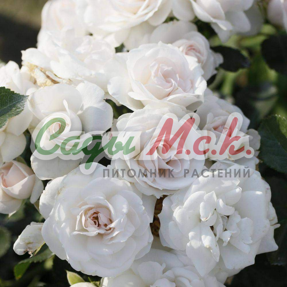 Aspirin Rose - цветки искристо белого цвета, с розовым оттенком в центре. Диаметр цветка 8-10 см. Цветки появляются в огромном количестве в кистях по 2-15 штук, покрывая весь куст цветами. Цветение обильное и непрерывное. Куст густой, с мелкой листвой, высотой 70-80 см, шириной - 80 см с мелкой листвой, всегда выглядит свежим. Сорт очень устойчив к заболеваниям.
