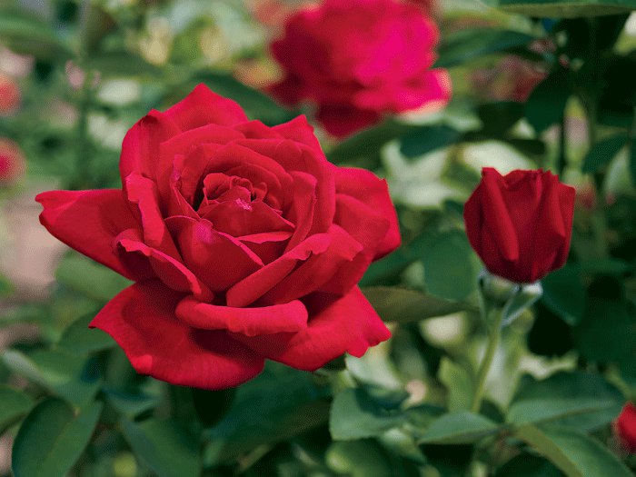 Роза Chrysler Imperial обладает насыщенным, ярким ароматом. Цветки малиновые, махровые, бокаловидные, появляются по одному на концах длинных побегов. На изнанке лепестков окраска светлее, и истинная глубина цвета проявляется только когда крупные бутоны распустятся в бархатистые шаровидные цветки. Диаметр цветков 10-11 см. Они прекрасно подходят для срезки. Цветение обильное, повторное. Листва матовая, темно-зеленая, нуждается в профилактике от мучнистой росы. Высота растения 150-175 см.