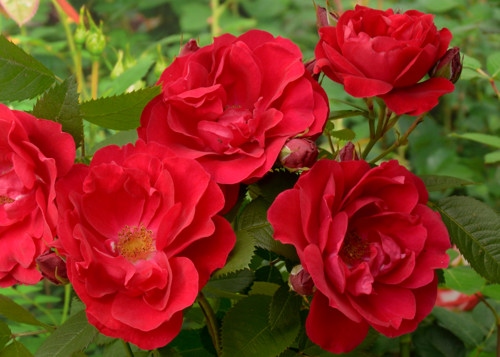 Роза Flammentanz - розы красного окраса с сильным ароматом. Цветки среднего размера (7-8 см), распускаются на концах побегов по одному или в кистях по 3-16 штук. Цветение обильное в течение 1-1,5 месяцев. Листья густые, ярко-зеленые, кожистые. Кусты сильнорослые, размером 200-300 см. Сорт зимостойкий, устойчив к грибным болезням.