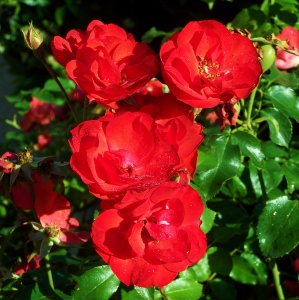 La Sevilliana - это удивительно яркая роза. Удлиненные бутоны распускаются в полумахровые чашевидные цветки 5-7 см в диаметре, очень яркого чистого алого цвета с немного волнистыми лепестками. Цветки появляются в кистях по 5-10 шт. Она сохраняет цвет и не выгорает на солнце. Цветение очень обильное, почти непрерывное. Цветы слегка ароматные. Куст густой, раскидистый, до 120 см высотой и столько же шириной. Листва блестящая, темно-зеленой листвой, часто с красным отливом. Устойчивость к заболеваниям и дождю хорошая.