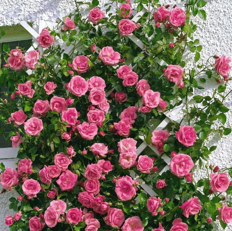 Роза Lawinia - цветки диаметром 9-11 см, махровые, чудесного, яркого чисто-розового цвета, который не изменяется в течение всего времени цветения, появляются в кистях по 3-7 штук, чрезвычайно устойчивы к атмосферным воздействиям. Обильно цветет повторно. Облиственность хорошая. Листья полностью устойчивы к мучнистой росе, чёрной пятнистости. Куст ветвистый, высотой 2,5-3 м.