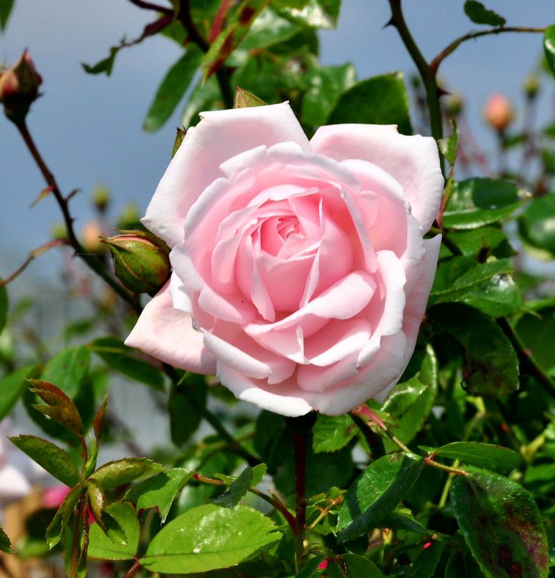 Саженцы розы New Dawn одной из самых распространенных в мире, по привлекательной цене можно приобрести в нашем питомнике. Куст-гигант вырастает до 2,5 м в высоту и около 2 м в ширину. Но если дать ему опору, то тонкие побеги достигнут 5 м. Крупномеры New Dawn формируют кисти из 3-5 бутонов. Размер цветка – 7 см. Оттенок – бледно-розовый, на солнце может выгорать до молочного окраса. Цветки не боятся дождя, но в холодном климате на них могут появиться темные пятнышки. Саженцы проявляют среднюю устойчивость к черной пятнистости и мучнистой росе. Роза цветет с начала лета и до самых заморозков, постоянно формируя новые бутоны.
