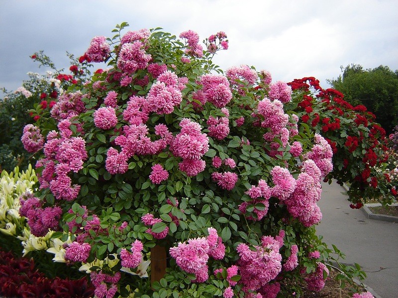 Куст вырастает в высоту до 3 м, а в ширину – около 2 м. Гибкие стебли покрыты минимальным количеством шипов и светло-зеленой листвой. Бутоны формируют соцветья из 20-40 штук. Размер густомахрового цветка – 4 см. Оттенок – темно-розовый, но на солнце быстро выгорает. Аромата практически нет. Крупномер Super Dorothy проявляет повышенную устойчивость к мучнистой росе и черной пятнистости. Дождливая погода никоим образом не отображается на внешнем виде бутонов.