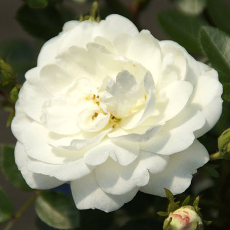 Роза White Babyflor - сорт с махровыми цветками, усыпанными по всему кусту. Окрас белый, тычинки желтые. Цветки большие (диаметр 4-6 см) и собраны в соцветия. Листья имеют оттенок свежей сочной зелени. Высота растения – 50 см. Сопротивляемость болезням хорошая.