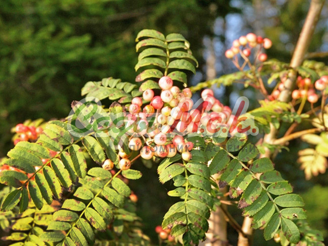 Рябина Pink Veil - декоративность данного сорта рябины заключается в плодах. Вначале ягоды имеют белый цвет, затем становятся более розовыми, а к вызреванию преобретают еще и красноватый оттенок. Высота взрослого растения до 2,5 м. Годовой прирост до 20 см,чаще до 15 см. Листья расположены очередно,непарно-перистые,края почти до основания остро-разрезанные,с верхней стороны зеленые, с нижней стороны серо-зеленые,очень слабо опушены,листовой черешок красный,осення окраска- желтая или оранжево-красная. Плоды шарорвидные или плоскоокруглые,розовые, у плодоножки и около чашечки иногда темнее,диаметром 0,8 мм.
