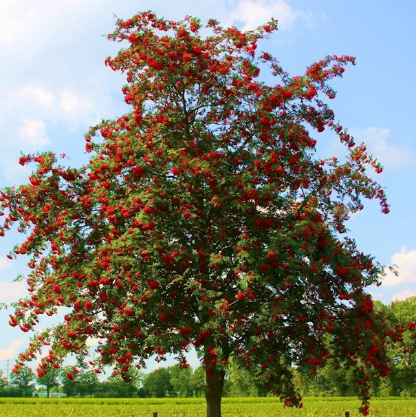 Саженцы рябины обыкновенной Эдулис хорошо украсят любой садовый участок благодаря своим декоративным свойствам. Этот сорт отличается узкой пирамидальной формой кроны, его листва более крупная и ажурная. Соцветия формируются в крупные розетки, они источают вокруг себя сильный приятный запах в конце мая. Плоды красного цвета созревают в конце августа, они являются съедобными, мякоть на вкус кисло-сладкая. Данный крупномер зимоустойчив, любит солнечные места, но хорошо переносит полутень. Рябина обыкновенная Эдулис используется для создания сезонных композиций и как плодовая культура.