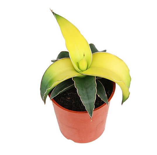 Сансевиерия Звездная Канарейка – привлекательный сорт, у которого листовые пластины двух цветов: ярко-желтого (лимонного) и ? зеленого. Причем, зеленый окрас ? они приобретают по мере взросления. Листья дугообразной формы, словно лодочки, окантовка – светлая.