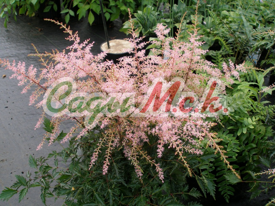 Компактное корневищное растение. Листья сложноперистые, зелёные, высотой 30-40 см. Цветки мелкие, карминно-розовые, в больших плотных пирамидальных метёлках. Зацветает в июне. Сорт подходит для выращивания в контейнерах. Зона зимостойкости 4 (-34 / -29 °C)