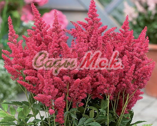 Саженцы астильбы Vеrоniса Klоsе – это компактные среднерослые кусты с темно-зелеными листьями и красными стеблями, на которых в июле-августе появляются густые метельчатые соцветия темных лилово-розовых тонов. Этот сорт замечательно смотрится в композициях с другими многолетниками, а также в множественных посадках. Саженцы данного сорта предпочитают полутень, а также зоны разреженной тени. Главное – не допускать пересыхания почвы.