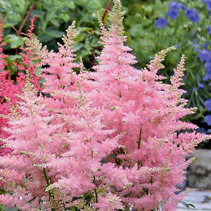 Саженцы астильбы Jumр аnd Jivе просто поражают насыщенными красками своих светлых пурпурно-красных соцветий. Этот сорт относится к самым нетребовательным астильбам. Саженцы прекрасно растут в полутени и на солнце, а кроме того, это декоративное растение отлично развивается в контейнерах. Компактные кусты красиво смотрятся и в одиночных, и в групповых посадках. Сорт обладает отменной морозостойкостью и легко переносит наши зимы.