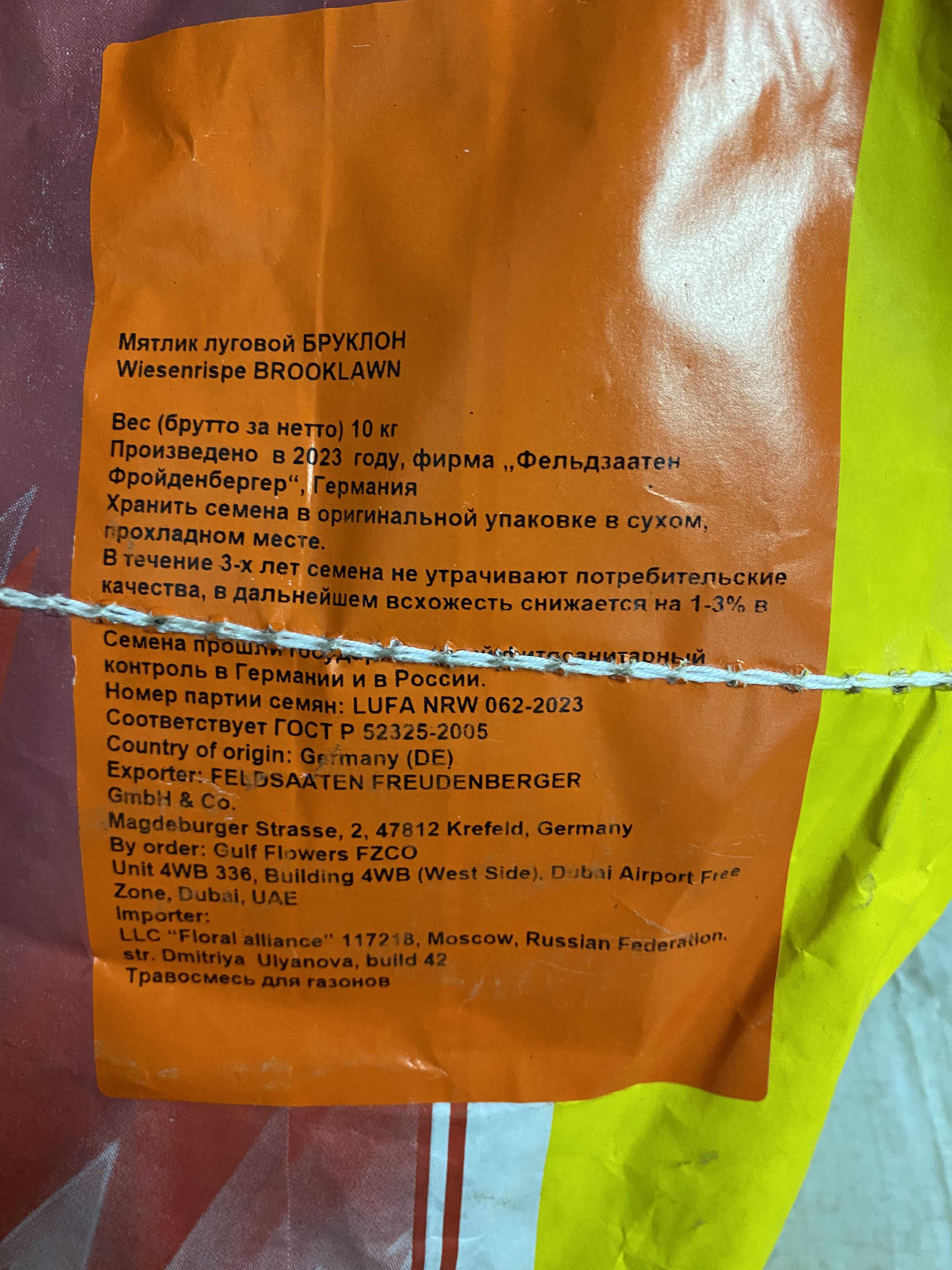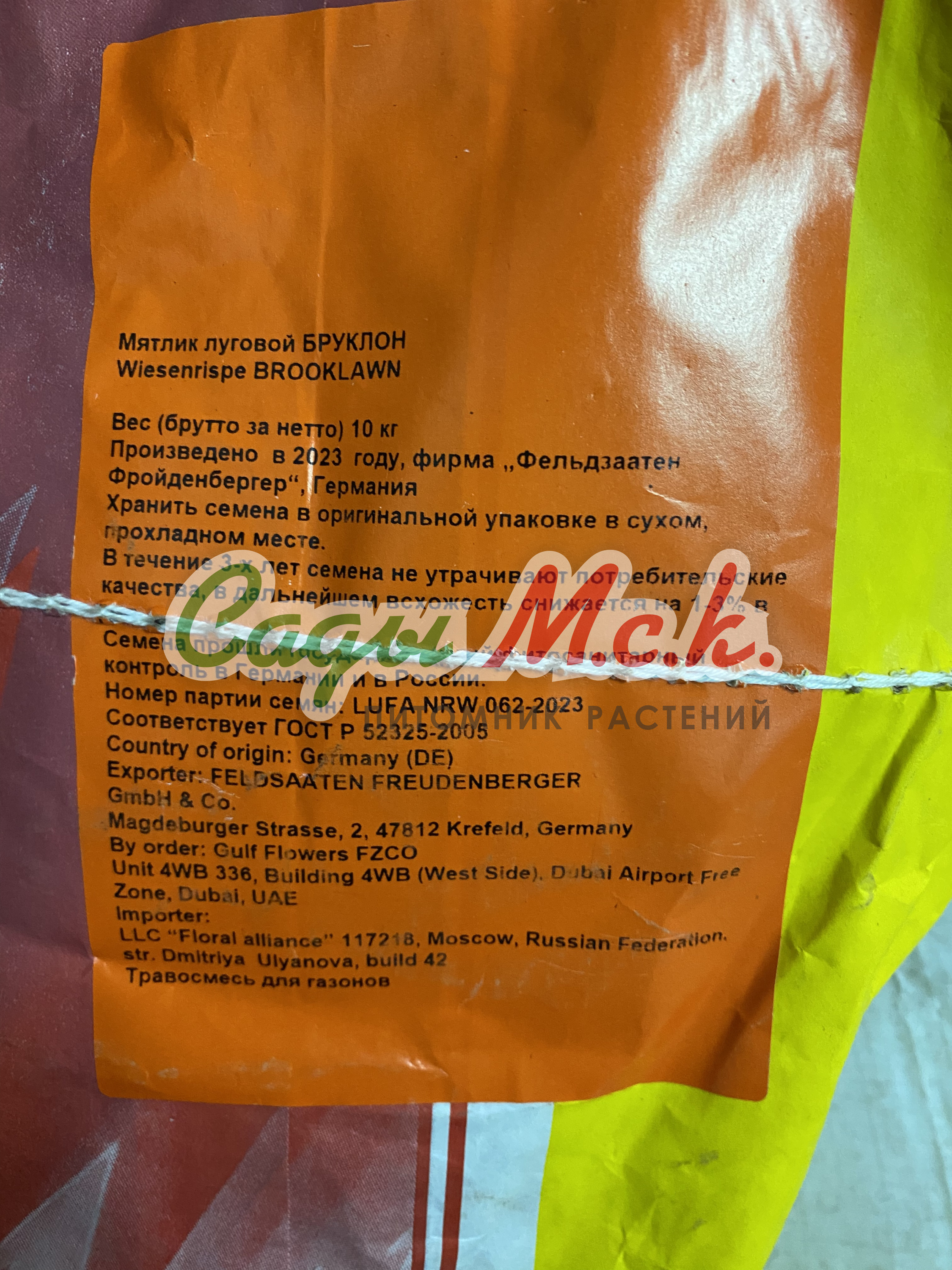 Состав: 100% мятлик луговой BROOKLAWN. Производитель: Фельдзаатен Фройденбергер (FELDSAATEN FREUDENBERGER). Страна: Германия. Дата производства: 2023 г.