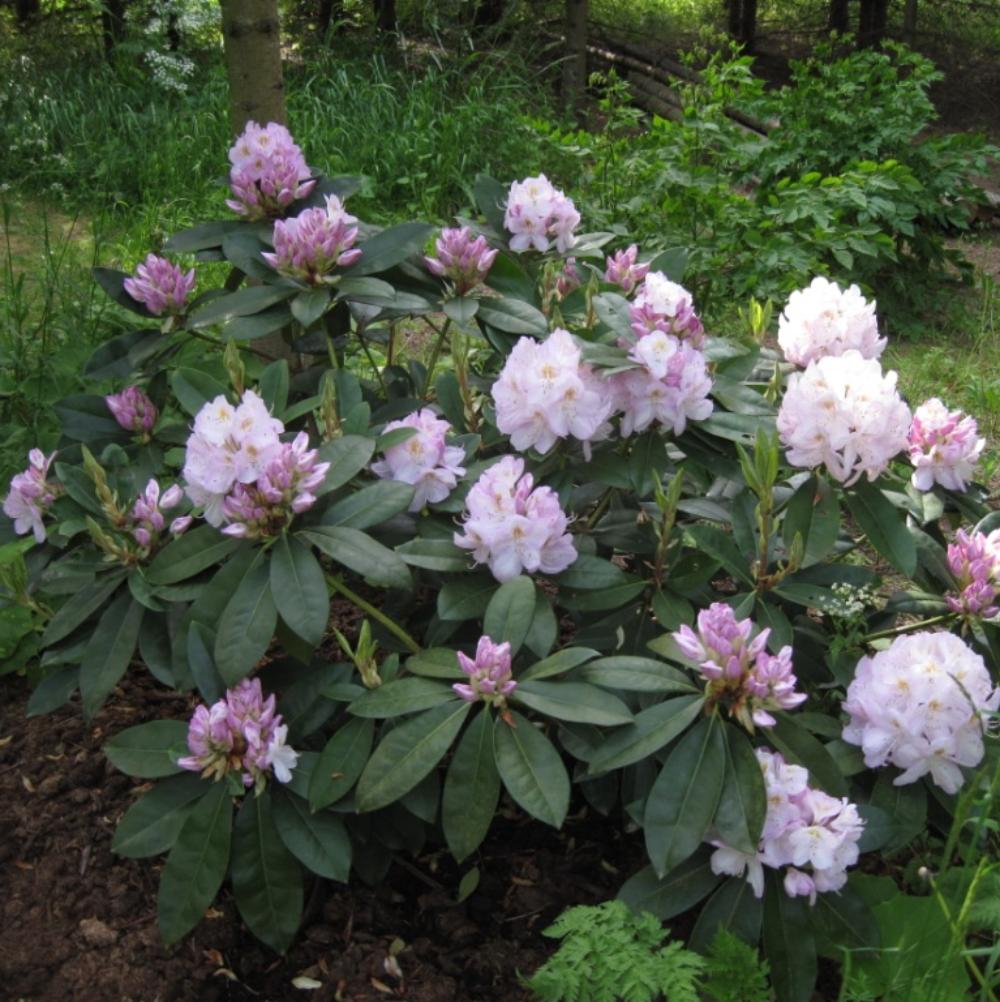 Рододендрон Gomer Waterer - кустарник до 3 м, но в условиях Подмосковья значительно ниже. Бутоны фиолетовые, при распускании бело-сиреневые. Время цветения май - июнь. Листья темно-зеленые, эллиптические, кожистые, блестящие, длиной 10 - 15 см, 2 - 4 см шириной. Быстрорастущий, 10 - 15 см в год. Почва кислая, богатая перегноем, хорошо дренированная почва. При посадке предпочтительно использовать специализированный грунт. Хорошо растет в полутени.