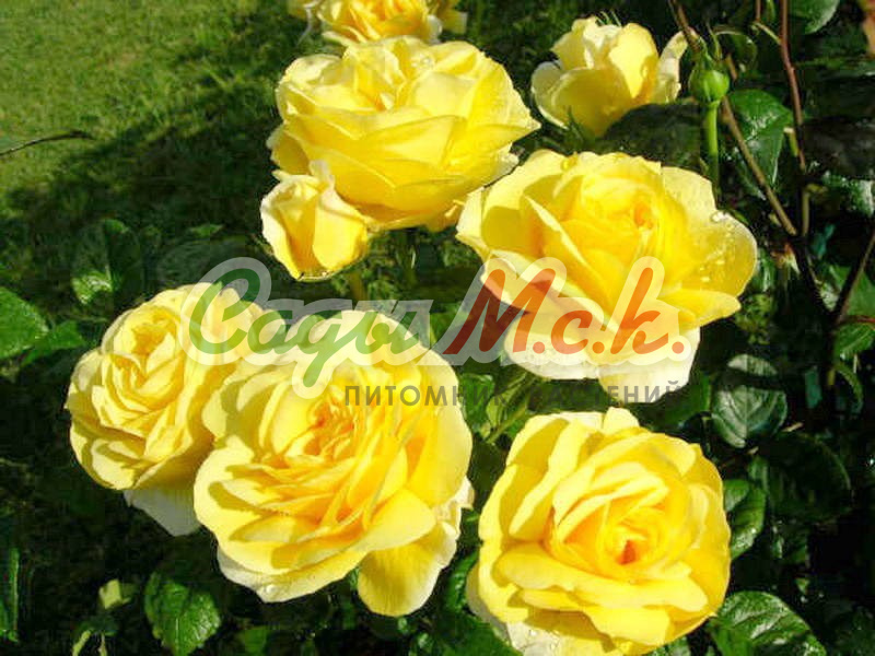 Роза Philippe Noiret - золотисто-желтый цветок с красной каймой, махровый (35-40 лепестков водном цветке). Диаметр цветка 11-12 см, высота растения 80-90 см. Цветение обильное, сорт морозостойкий. Листья зеленые, глянцевые.