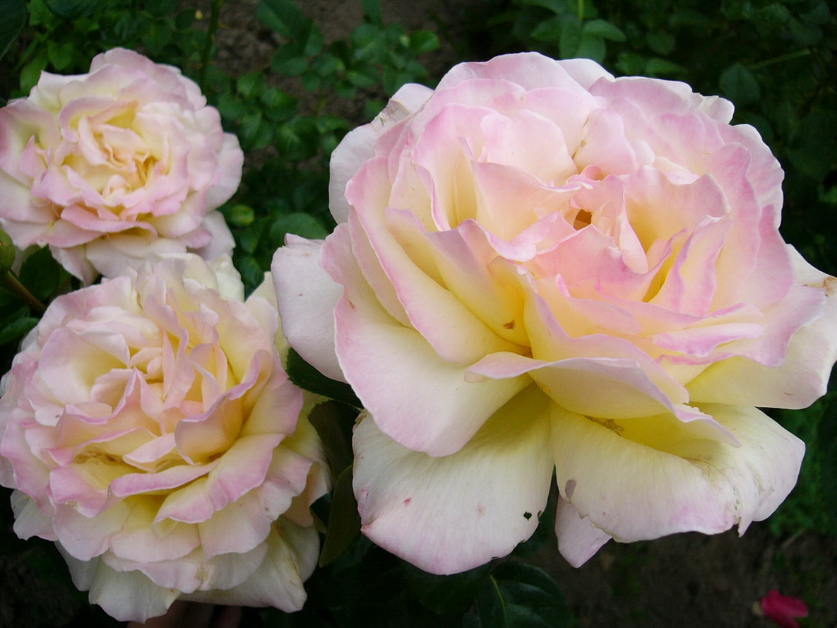 Роза M-me.A.Meilland с крупными, нежно-лимонными цветками с тонким, розовым обрамлением; высокая стройная красавица. Ее удлиненный, с острыми верхушками бутон, расцветая, открывает многочисленные бархатистые или атласные лепестки с аккуратно загнутыми краями, свернутые в центре в высокий конус. Цветок сильно махровый, содержит 65 лепестков, диаметр цветка достигает 15 см. Высота растения - 80-120 см. Куст сильнорослый, ветвистый, с блестящей темно-зеленой листвой, хорошо выглядит даже когда не цветет.