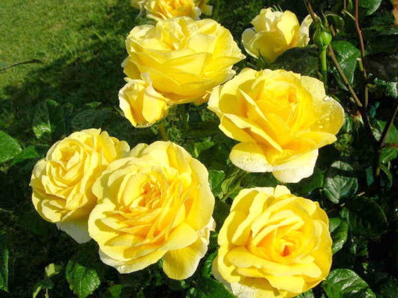 Рослый куст вырастает до 1,5 м в высоту и около 0,7 м в ширину. Жесткие побеги покрыты темно-зелеными, блестящими, крупными листьями. Главное украшение куста – большие бутоны. На цветоносах формируются кисти из 3-7 штук. Размер цветка – 10 см в роспуске. Оттенок – светло-желтый по краям и желтый в серединке. Аромат – сильный, стойкий. Форма – чашевидная, цветок густомахровый. Крупномеры Michelangelo проявляют высокую стойкость к мучнистой росе, практически не болеют черной пятнистостью. Из-за нежных лепестков цветы боятся дождя.