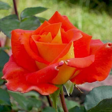 Роза Monika. Чудный аромат этой розы и обилие цветения завораживает многих садоводов. Сорт выделяется богатой, яркой оранжево-алой окраской крупных махровых цветов желтых у основания и с внешней стороны. После распускания окраска цветка более однотонная. Цветки, как правило, одиночные. Диаметр цветка 10-11 см, высота растения - 120-170 см. Цветение обильное, повторное. Сорт обладает высокой морозостойкостью.