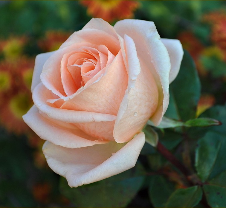 Куст вырастает до 1,75 м в высоту и около 1,25 м в ширину. Побеги покрыты ярко-зеленой, крупной листвой. Размер цветков – 10 см. На цветоносе формируется один бутон. Оттенок – кремовый, персиковый. В бутоне окрас темнее, а в роспуске – светлее. Цветки быстро выгорают на солнце. Аромат – нежный, насыщенный. Крупномер Osiana проявляет среднюю устойчивость к черной пятнистости и мучнистой росе. Как и многие цветки светлого окраса, этот сорт боится дождя. Саженцы отзываются на подкормки.