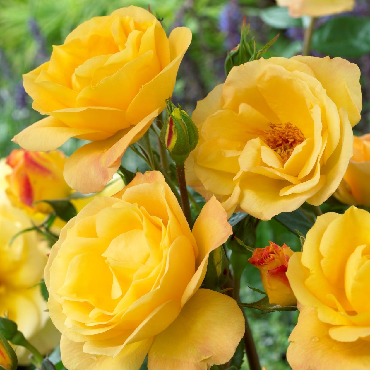 Arthur Bell обладает насыщенным сладким ароматом. Цветки золотисто-желтые, кремовые, махровые (15 - 20 лепестков), устойчивые к неблагоприятным погодным условиям (солнце, дождь, мороз). Диаметр цветка 8 - 10 см. Цветки собраны в соцветия. Цветение продолжительное, повторное. Куст сильнорослый, высотой - 80-90 см, размер 80 х 60 см. Листья темно-зеленые, глянцевые. Высокая устойчивость к заболеваниям и морозостойкость.