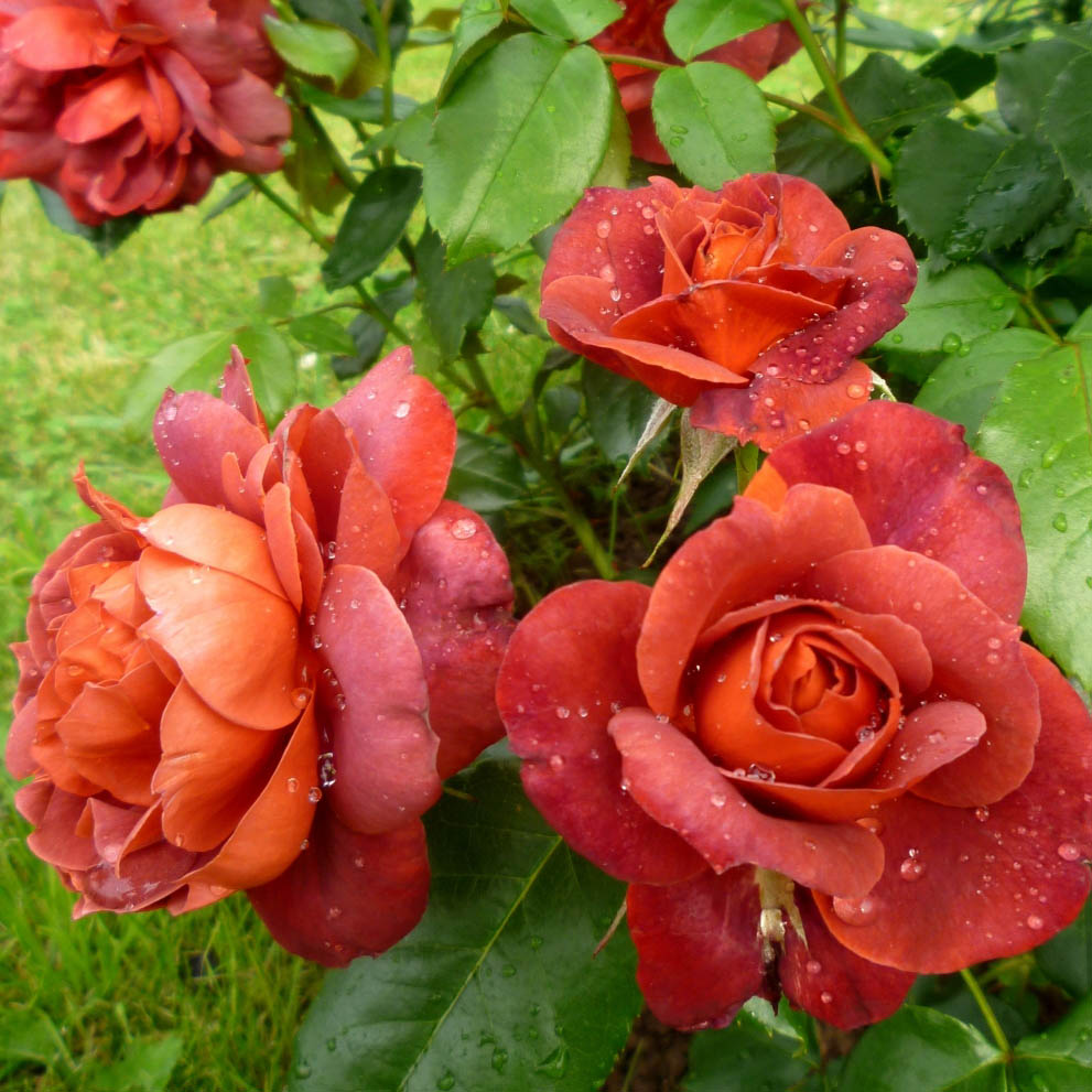 Hot Chocolate - цветки оранжево-коричневые, с белыми потеками и белой окантовкой по краю лепестков. Цвет становится более коричневым по мере распускании цветка. Цветки крупные (8-9 см в диаметре), махровые (25 лепестков), появляются обычно по одному или в кистях по 3-5 шт. Куст высотой 80-100 см и шириной 80-90 см, прямостоячий. Побеги покрыты крупной, темно-зеленой, глянцевой листвой, с хорошей устойчивостью к дождю, к мучнистой росе и черной пятнистости. Цветение обильное, продолжительное с июня по октябрь, ремонтантное.
