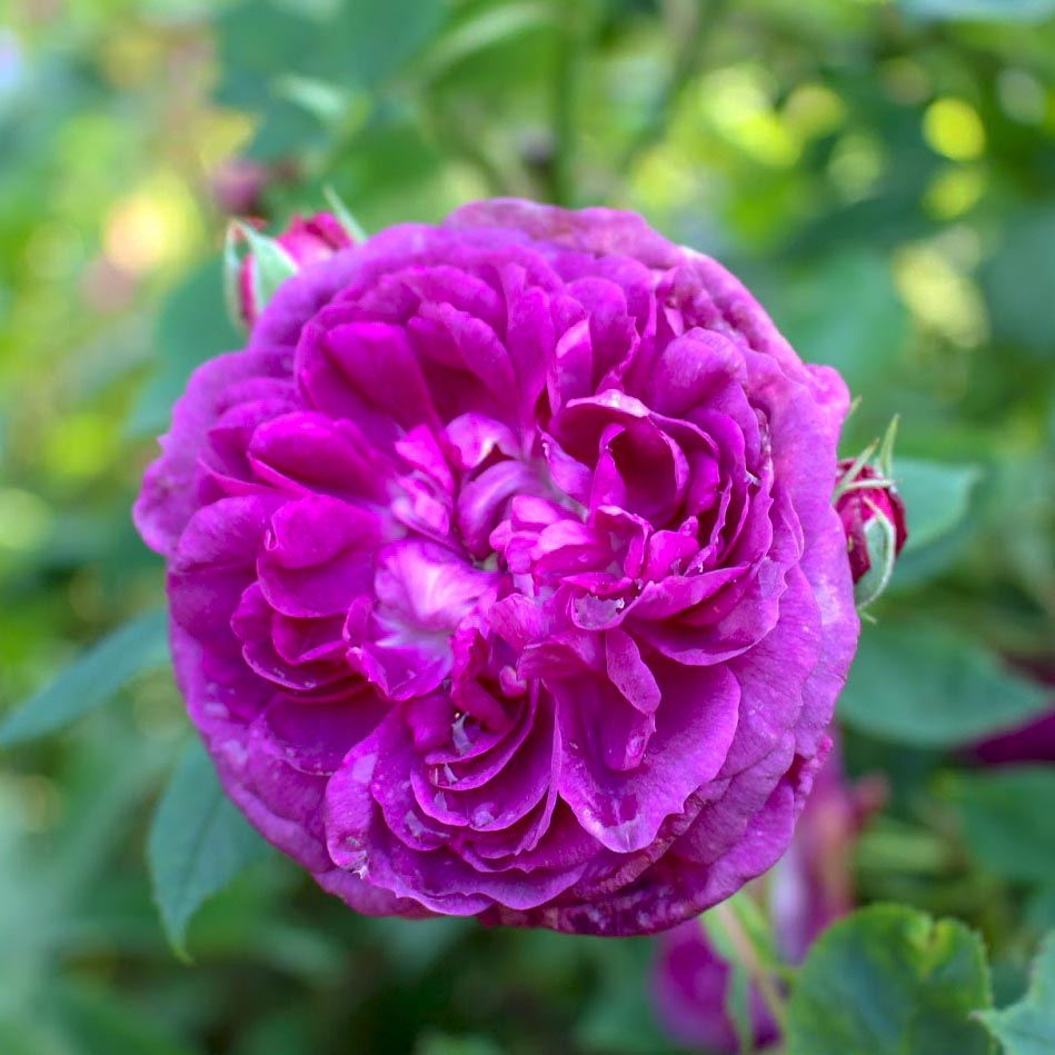 Роза Cardinal de Richelieu куст густой, компактный. Высота растения 90 - 130 см, размер куста 110 х 80 см. Лист крупный, эллиптический, темно-зеленый, матовый. Шипов мало. Цветок бархатный темно-сиренево-фиолетовый, шаровидный до плоскочашевидного, густомахровый (40 - 50 лепестков в одном цветке), диаметр цветка 5 - 6 см. Сорт обладает очень насыщенным ароматом.Цветение обильное, продолжительное, однократное. Цветки собраны в соцветия. На одном цветоносе в период массового цветения насчитывается 3 - 5 цветков одновременно.