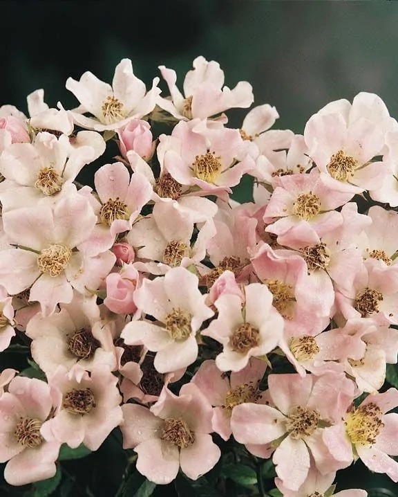 Саженцы розы Nozomi, обильноцветущего, неприхотливого сорта, с гарантией качества можно купить в нашем питомнике. Куст формирует до 0,6 м в высоту и около 1,5 м в ширину. Колючие, гибкие стебли покрыты мелкими, темно-зелеными листьями. У крупномера Nozomi цветки маленькие, всего 2 см в диаметре, состоят из 5 лепестков, но они привлекают своим количеством. На одном побеге может сформироваться от 50 до 150 бутонов. Все они расцветают почти одновременно, создавая красивый нежно-розовый шар. Саженцы проявляют среднюю устойчивость к болезням и вредителям. Цветы не боятся дождя, не выгорают на солнце.