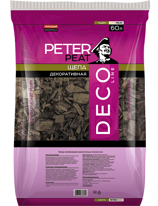 Щепа декоративная (Черная, линия Деко) 60 л - природные материалы для декорирования. Используется в ландшафтном дизайне для офромления цветников, альпийских горок, оригинальных клумб и создания композиций.