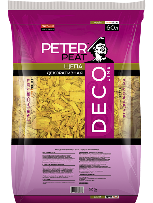 Щепа декоративная (Желтая, линия Деко) 60 л - природные материалы для декорирования. Используется в ландшафтном дизайне для офромления цветников, альпийских горок, оригинальных клумб и создания композиций.