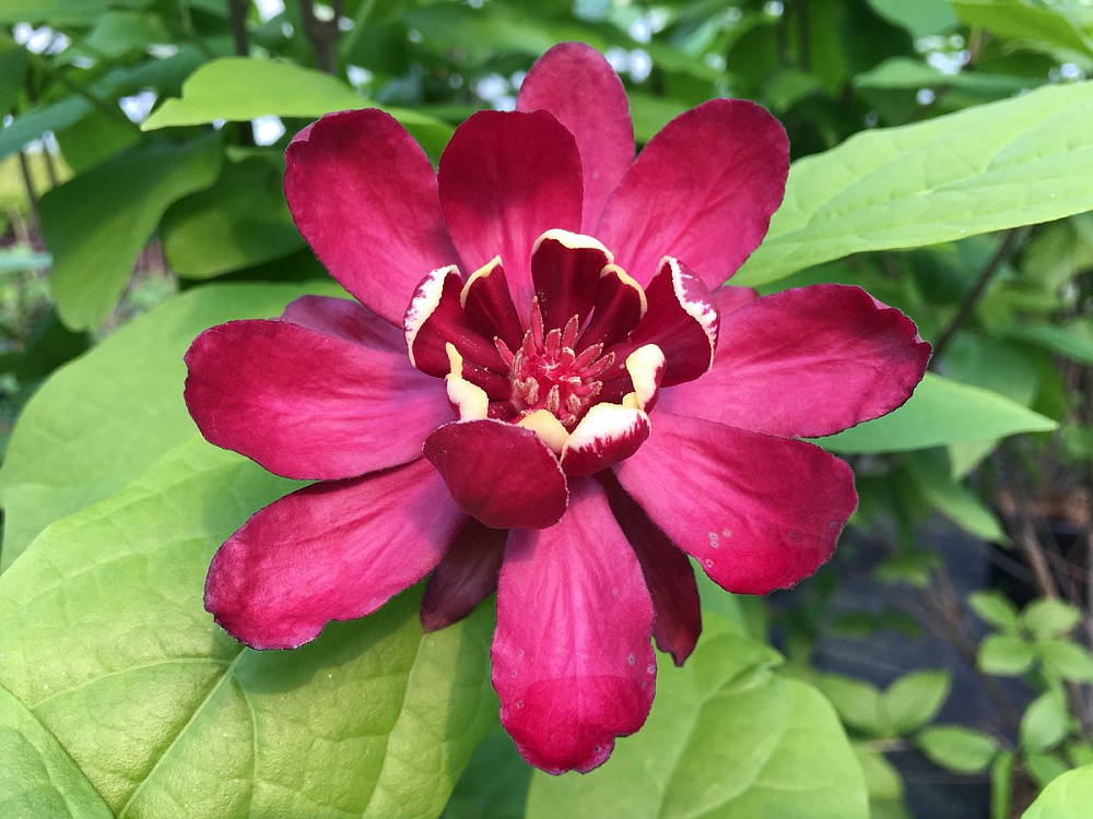 Синокаликаликант "Харлэйдж Вайн" - редкий и восхитительный кустарник. Характеризуется полушаровидной, густой кроной. Достигает до 3 м в высоту и ширину. Листья насыщенно-зеленые, светлые, блестящие. Осенью кремово-желтые. Период цветения май-сентябрь. Цветы отливают оттенком бургундского красного цвета, смотрятся очень привлекательно на фоне с блестящей зеленой листвы, Цветки душистые, до 7,5см в диаметре. Произрастает в хорошо дренированной почве на солнце или пятнистой тени. Не любит сильный холодный ветер. Морозостойкость средняя, в молодом возрасте требует легкого укрытия. Рекомендуется высаживать одиночно или группами, в живых изгородях. Цветет с 3-4 лет