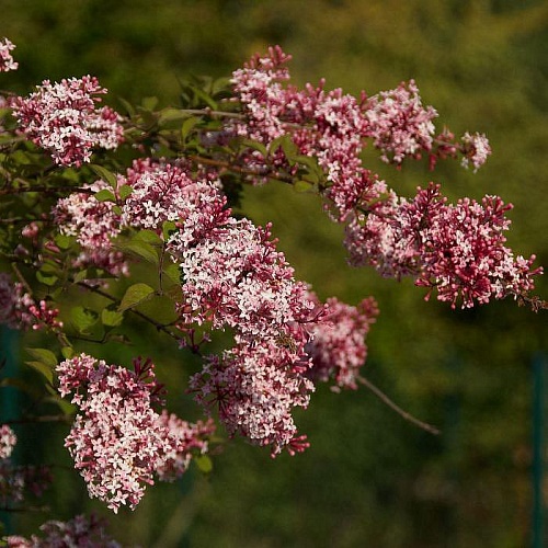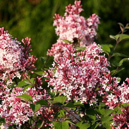Одна из лучших маленьких сиреней, к 10-ти годам высота 150 см, диаметр 200 см. Цветки с приятным ароматом, тёмно-розовые с красным, в маленьких соцветиях. Цветение в мае. Листья мелкие, ветки тонкие. Место солнечное, к почве нетребовательна. Подходит для выращивания в контейнерах. Зона 5 (до -23°С)