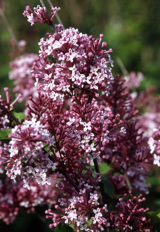 Особенность – две волны цветения. Первая приходится на конец мая, а второй раз кусты цветут менее интенсивно в конце августа. Фиолетово-розовые цветки, собранные в плотные соцветия, имеют сильный аромат. Растение предпочитает солнечные участки и нуждается в умеренном поливе.