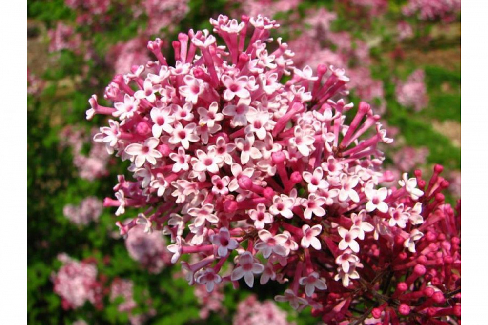 Сирень Мейера Тинкербелл - карликовый сорт. Высота куста достигает 1,5 м. Бутоны ярко - вишневые. Цветы розовые, мелкие, диаметром 5-7 мм. Аромат сильный. Цветет в конце мая-начале июня. Возможно повторное цветение в конце осени
