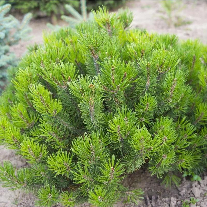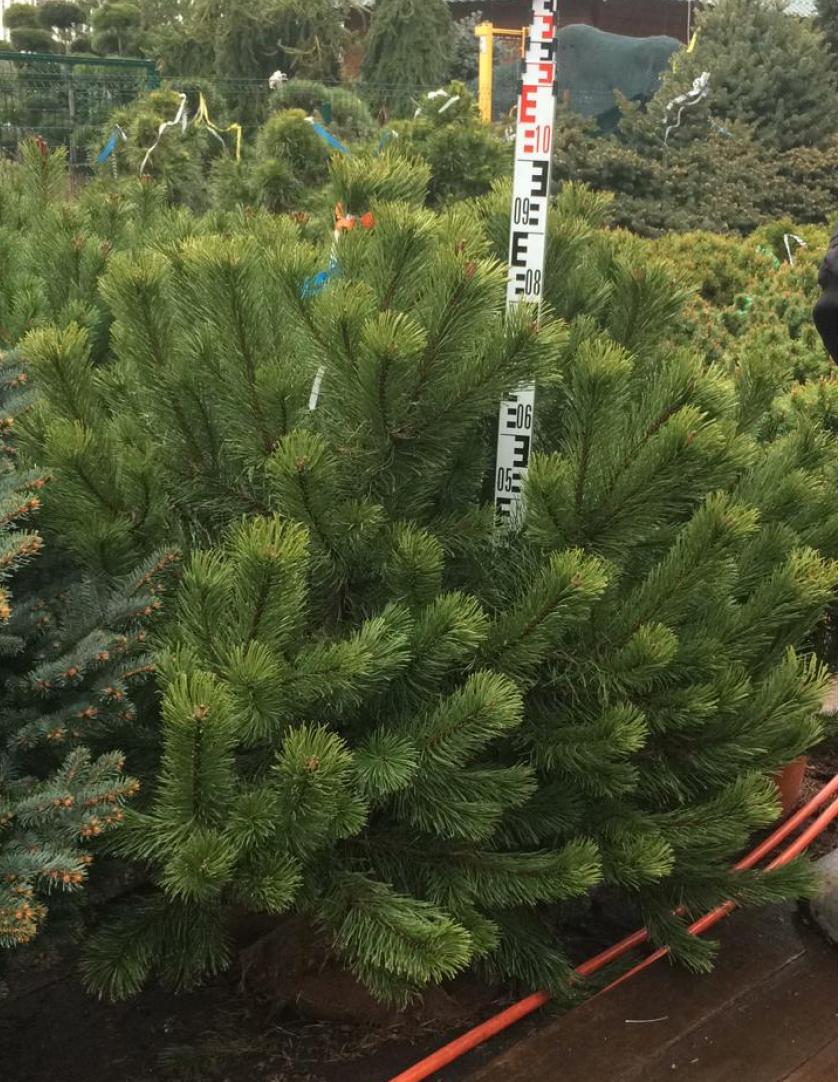 Взрослое растение вырастает до 3 м как в высоту, так и в ширину. Формирует стелющуюся, распростертую крону. Ежегодно побеги вырастают на 10 см в высоту и 12 см – в ширину. Ветви подняты вверх, короткие, покрытые жесткой, игольчатой хвоей темно-зеленого оттенка. Длина иголок – около 4 см. Крупномер горный Мугнус светолюбив, хорошо развивается на солнечных участках и угнетен в тени. Не боится сильных ветров и морозов, не требователен к почве. Сорт используют в альпинариях и для формирования живой изгороди.