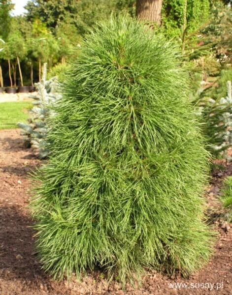 Сосна обыкновенная Globosa Viridis - карликовая, очень компактная, зеленая сосна, основным отличием которой является очень густая хвоя двух размеров. Молодая - появляется поздно летом и вырастает всего на половину длины прошлогодней. Эти светлые и пушистые кисточки на концах побегов, закрывающие молодые почки, придают всему растению некоторую «плюшевость». На следующий сезон хвоя дорастает до своей полной длины (до 10 см), обеспечивая всей сосне широкие, мягкие формы. Высота взрослого растения - 2,5 м.