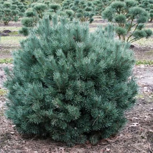 Взрослое растение достигает 4 м в высоту и столько же в ширину. Крону формирует округлой, кустовой формы. Ветки плотно прилегают друг к другу, густые, поэтому сосна напоминает пушистый шар. Крупномер обыкновенная «Ватерерри» в зависимости от условий выращивания дает ежегодный прирост до 0,5 м. Побеги покрыты жесткой хвоей (длина около 4 см) зеленовато-голубого оттенка. Сосна хорошо себя чувствует как в полутени, так и на открытых солнечных участках.