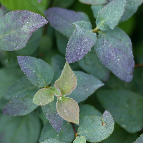 Молодая листва весной - темно-красная (бургунди), зрелая летом- прохладно-сине-зелёная, к осени - фиолетово-красная