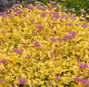 Саженцы спиреи японской Golden Princess при небольшом росте кустарника удивительно красивы, покрыты желтыми листьями, меняющими интенсивность расцветки от весны к сентябрю.