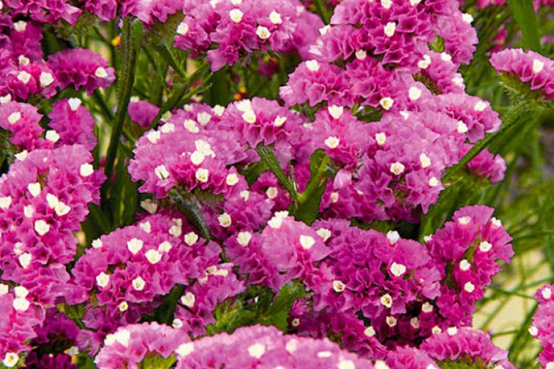 Красочное многолетнее растение, выращиваемое как однолетнее. Сорта серии «QIS» от компании «PanAmericanSeed» специально выведены для получения высококачественной срезки и могут использоваться как самостоятельно, так и в композициях с другими цветами. Однако наибольшей популярностью они пользуются в качестве флористического материала для зимних букетов. Прямостоячие, ветвящиеся в верхней части цветочные стебли увенчаны крупными (10-12 см) щитковидными соцветиями. Мелкие ярко-розовые цветочки после высыхания не теряют форму и насыщенность цвета. Статица прекрасно подходит для оформления клумб, рабаток и миксбордеров, высаживается группами на газоне. Зацветает в конце июня и цветет обильно до сильных заморозков. Во время цветения привлекает в сад большое количество бабочек.