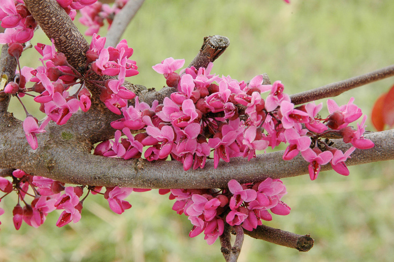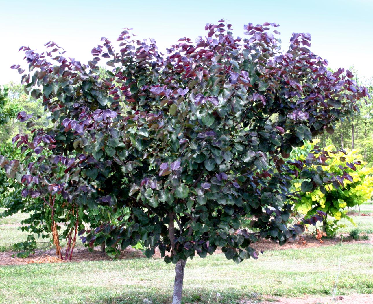 Очень декоративное дерево высотой 5-6 м. Крона широкая компактная. Листья очерёдные, сердцевидные, глянцевые, тёмно-фиолетовые, длиной и шириной 8-12 см, концу лета зеленеют, а осенью желтеют. Цветки пурпурно-красные, маленькие, в пучках. Цветёт в мае, до распускания листьев. Плоды образуются редко. Место солнечное. Почва плодородная, умеренно влажная, слегка кислая. Рекомендуется для выращивания в тёплом климате и в молодом возрасте требует укрытия на зиму. Зона 6 (до -18ºС).
