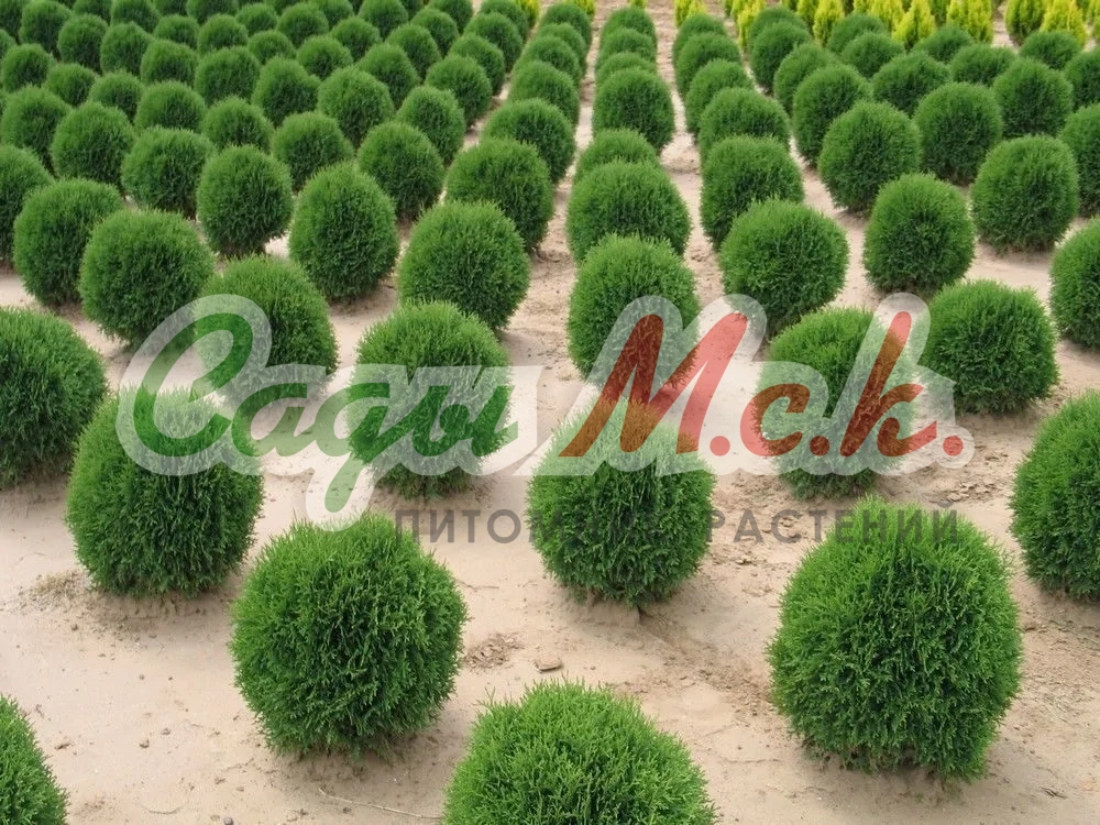 Туя западная Globosa Compacta - карликовый кустарник 0,6-1 (1,2) м высоты и до 1 м диаметром. Крона шаровидная, плотная. Побеги прямые, плоские, приподнятые вверх, перекрывающиеся. Хвоя чешуевидная, весной светло-зеленая, летом зеленая, зимой серовато-зеленая или коричневато-зеленая.