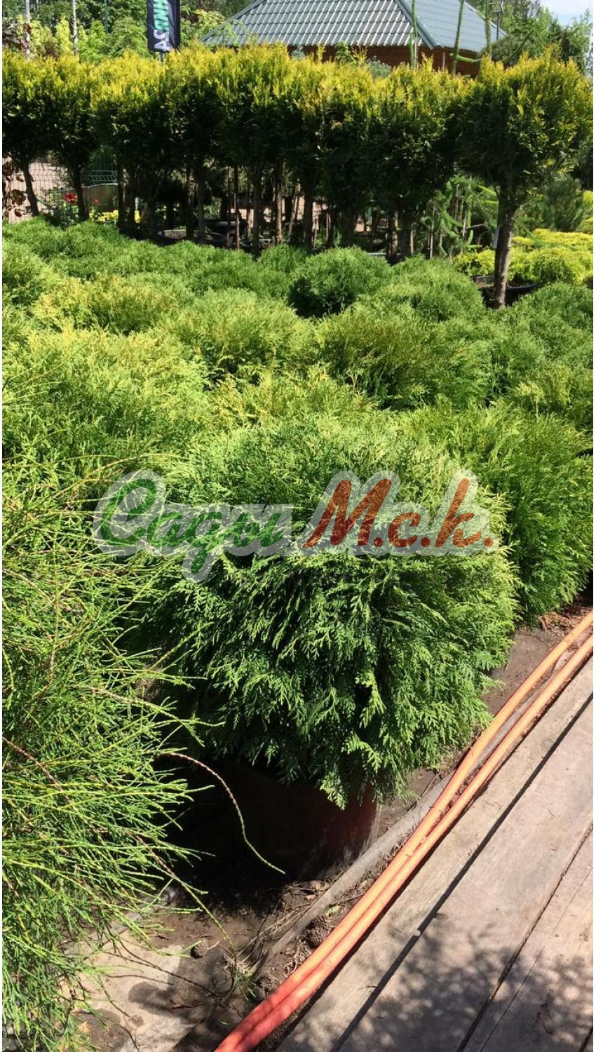 Крона шаровидная, позднее становится более широкой, вырастает в высоту до 1,5 метров в 10 лет. Одна из немногих туй, которая обладает округлояйцевидной формой кроны и достаточным ростом, чтобы выступать в качестве солирующего растения в композициях. Побеги густые, прямые , плоские. Хвоя от темно-зеленой до светло-зеленой. Плоды – маленькие коричневые шишки.