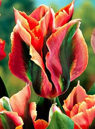 Тюльпан Artist - устойчивый, здоровый, зеленоцветный сорт, роскошен и грациозен. Высота растения 45-50 см. Цветок красивый, оранжево-красный. Бутон крупный, длинный, высокий (8-10 см). Лепестки вытянутые, заострённые, оранжево-красные, с широкой ярко-зеленой штриховкой по всей спинке. Цветение продолжительное, около 2-х недель.
